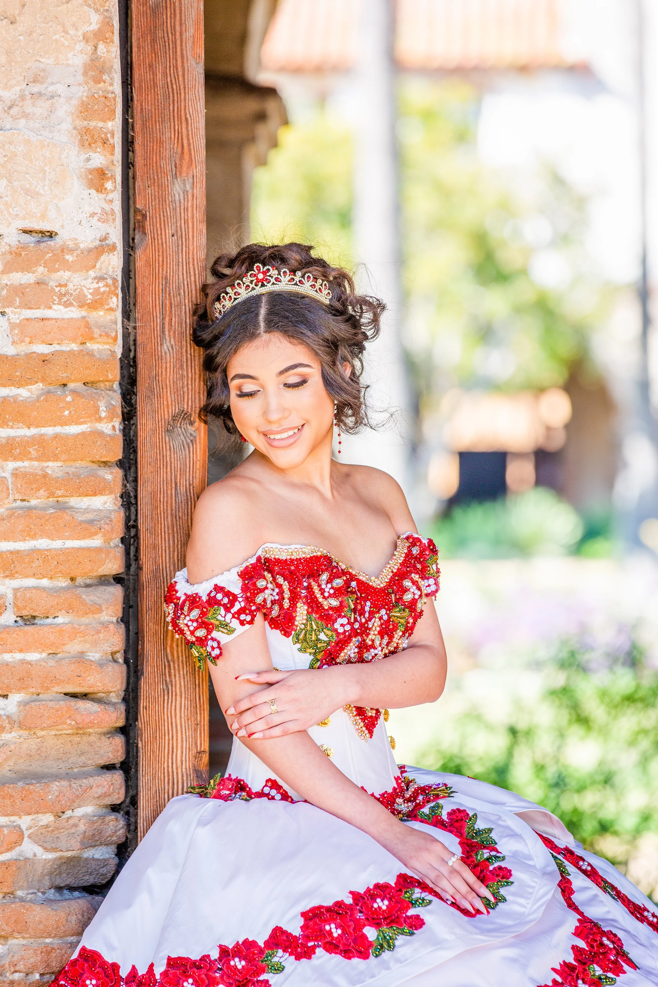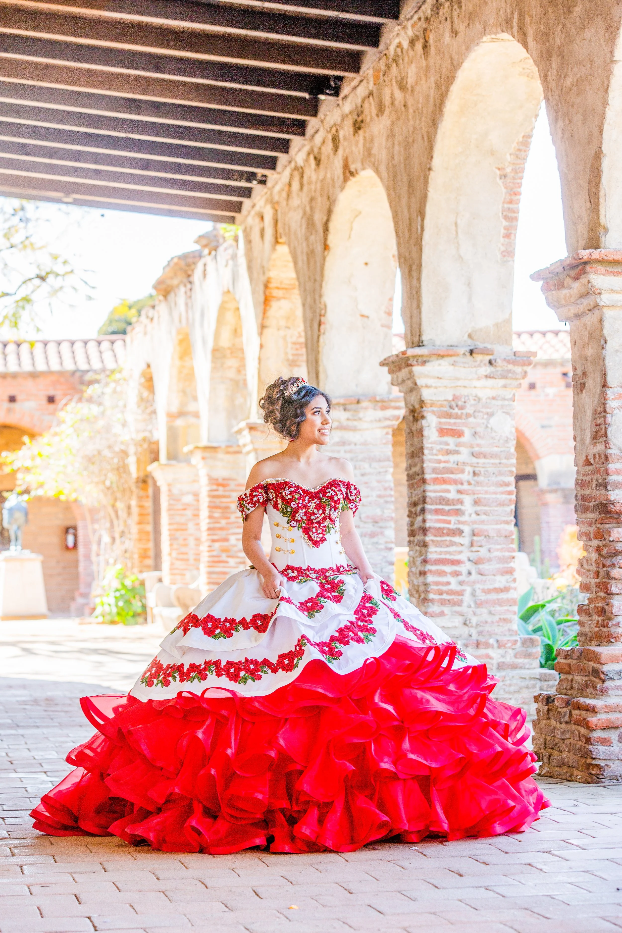 #MissionSanJuanCapistrano #Quinceanera #SanJuanCapistrano,CA #FloweredRedMexicanQuinceaneraDress